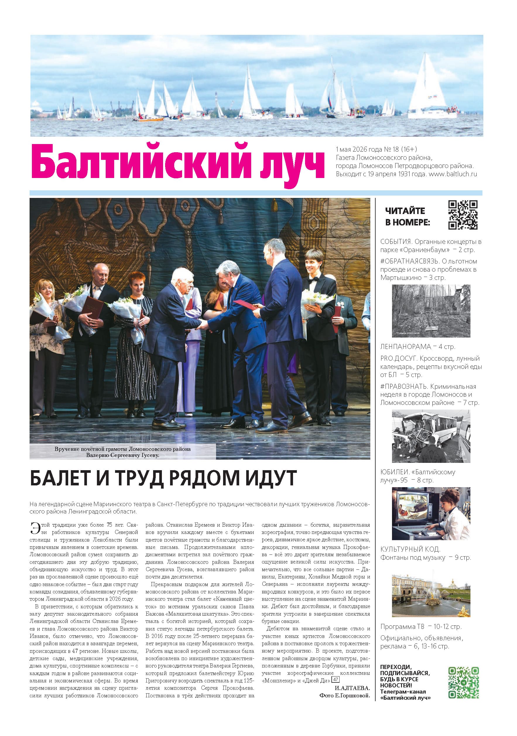 Главная #Мойрайон Новый номер газеты «Балтийский луч» (№18 от 01.05.2026 года) — уже в продаже и в ваших почтовых ящиках