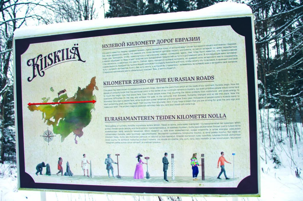 Путешественница Анна Лоскутова также говорит о чудесной зимней красоте, в которую она окунулась во время своей прогулки в окрестностях старинной усадьбы Киискиля под городом Выборг. «Неожиданно для себя мы узнали, что от шоссе до этой усадьбы мы шли по дороге, которая называется Королевской, – рассказывает Анна. – Но ещё более удивительно, что мы очутились в центре Европейского континента, на нулевом километре, в месте, от которого идёт отсчёт всех дорог Евразии. Во всяком случае, так гласит надпись на информационном стенде. Он же рассказывает, что здесь находится «место силы и исполнения желаний», которые сбудутся, если подержаться за знак «0 км». Рядом – огромный камень, обнесённый цепочкой. Возможно, в древности магической силой наделяли именно его. На всякий случай мы подержались и за камень, и за знак. Может, благодаря этому наше путешествие к башне Тура, куда, собственно, мы направлялись, было удачным, несмотря на сложность маршрута». По дороге к башне путешественники встретили смешных мохнатых бычков редкой породы Хайленд, которые паслись в загоне у знака «0 км». Они всегда ждут от гостей чего-нибудь вкусного – морковку или яблоко. Лохматых бычков можно погладить и почесать специально оставленными здесь щётками. Дальше по дороге путешественники завернули в посёлок Подберезье, а потом прошлись по лесу, на месте которого раньше были усадьбы с прекрасными парками. О том, что там когда-то жили люди, говорят огромные тополя и россыпи камней кое-где.
