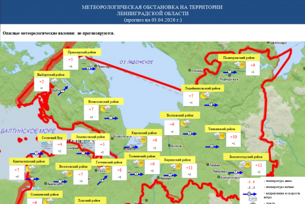 Прогноз по Ленинградской области ФГБУ «Северо-Западное УГМС» обещает завтра переменную облачность и без осадков. Ночью и утром местами туман.