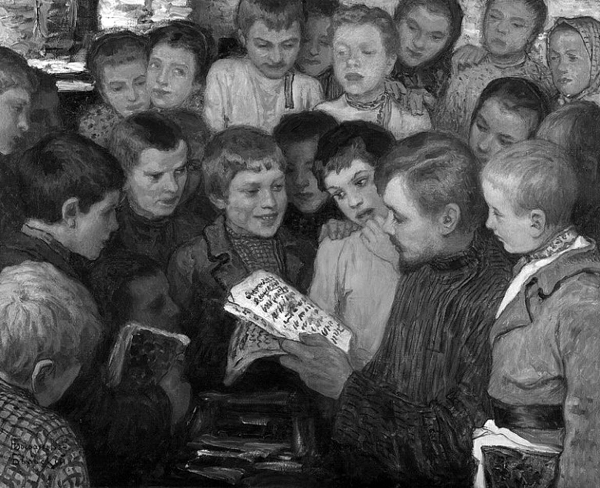 Фото сверху: Н. П. Богданов-Бельский.1890-е годы. Как видно,среди учеников преобладают мальчики.
