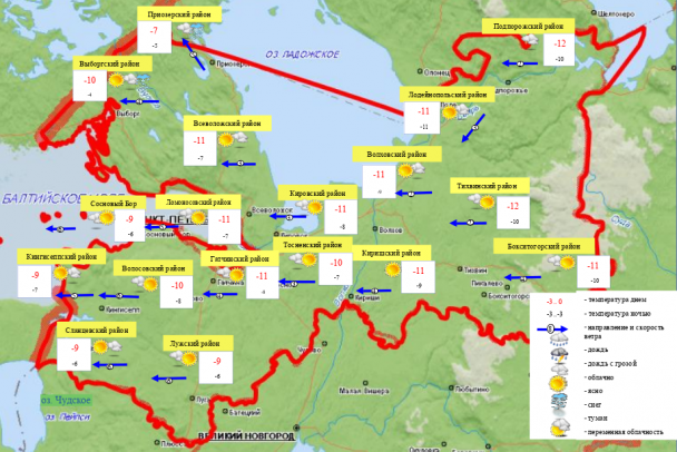 В Ленобласти завтра температура воздуха может понизиться до -12. Ожидается небольшой снег.