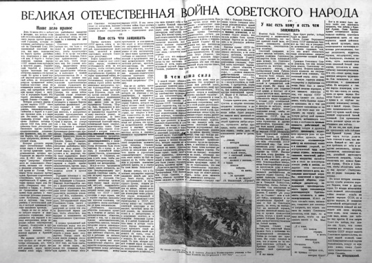 Со следующего номера, который выйдет в свет 23 июня 1941 года, и до победы в Великой Отечественной войне в 1945-м практически все сводки в газете «Вперёд» будут исключительно военные. Номер от 23 июня в архивах не сохранился. От 24 июня – последний номер, подписанный уходящим на фронт редактором Д. Бумагиным. В нём указы о мобилизации, об объявлении военного положения и первая сводка главного командования красной армии, начинающаяся со слов: «С рассветом 22 июня 1941 года регулярные войска германской армии атаковали наши пограничные части на фронте от Балтийского до Черного моря и в течение первой половины дня сдерживались ими». На последней полосе – подробный пересказ выступления Черчилля по радио: «Мы окажем России и русскому народу любую помощь, какую только сможем». На следующий день на внутреннем развороте газеты «Вперёд» публикуется программная статья публициста и революционера Емельяна Ярославского «Великая Отечественная война советского народа». Рискнём предположить, что именно в этой статье понятие «Великая Отечественная война» появилось впервые. Статью Емельян Ярославский делит на 4 подраздела: «Наше дело правое», «Нам есть что защищать», «В чём наша сила», «Нам есть кому и чем защищать». Он вспоминает победы предков: Ледовое побоище, изгнание Наполеона, гражданскую войну. «На весах истории взвешивается судьба десятков народов Европы, Азии и других стран. От исхода начавшейся ныне великой отечественной войны (с маленьких букв – так у автора) зависит судьба не только народов СССР, но и других народов», – заключает свою статью Емельян Ярославский. В конце июня в газете «Вперёд» печатается «Приказ по местной противовоздушной обороне г. Ораниенбаума» от 27 июня 1941 года: «В связи с объявлением города Ораниенбаума на угрожаемом положении…». Приказ подробно описывал сигналы воздушной тревоги и действия жителей во время авианалётов. 4 июля газета «Вперед» печатает выступление Сталина по радио «Братья и сестры!» 22 июля Ленинград бомбят немцы, о чём также пишет газета в материале «Оборона Ленинграда от воздушных налётов». Сводки, публикуемые на первой и второй полосах газеты «Вперёд», становятся всё более тревожными. Тем не менее даже в этой обстановке газета стремится прибавить читателям уверенности и оптимизма, публикуя, например, материалы о первых налётах советской авиации на Берлин. «В ночь с 8 на 9 августа, группа наших самолётов совершила второй полёт в Германию, главным образом с разведывательными целями, и бросила в районе Берлина на военные объекты и железнодорожные пути зажигательные и фугасные бомбы. Лётчики наблюдали пожары и взрывы. Действия германской зенитной артиллерии оказались малоэффективными». Тем временем в Ораниенбауме открывается райоргбюро по выдаче заборных карточек, по которым распределяются продукты и товары. Правила выдачи карточек печатаются отдельной брошюрой, которую газета «Вперёд» рекомендует приобрести руководителям предприятий и учреждений, а также управляющим домохозяйствами.