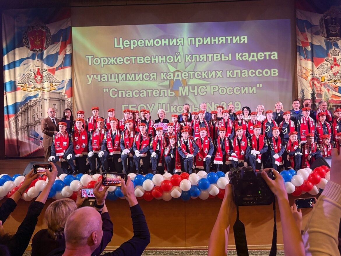 Торжественная клятва кадета учащимися кадетских классов «Спасатель» СОШ № 319 Петродворцового района Санкт-Петербурга.