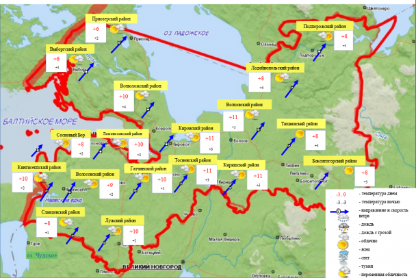 «Впереди выходные дни, и они ожидаются с очень хорошей погодой. С отходом атмосферного фронта к востоку погоду в нашем регионе снова начнет определять антициклон. Поэтому будет сухо, солнечно и со слабым ветром западных направлений. Следующие осадки ждем только к середине следующей недели», — пишет главный синоптик Петербурга Александр Колесов.