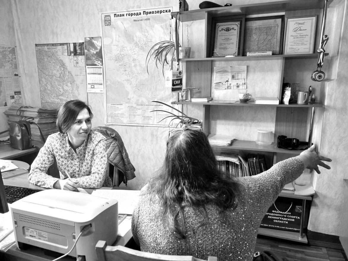 Волею судьбы эта небольшого роста и среднего телосложения женщина, с волосами чуть ниже плеч, слегка тронутыми сединой, и правильной формы лицом, тонкими губами и светлыми голубыми глазами оказалась в стенах редакции газеты «Красная звезда» Приозерского района Ленинградской области. Сюда она по совету хороших знакомых обратилась за помощью в изготовлении штендеров для шествия «Бессмертного полка» и принесла фотографии своего деда и его товарища, офицера красной армии, бывшего в послевоенные годы первым комендантом их города. Дед много говорил о нём как о хорошем, справедливом человеке. Они были очень дружны.